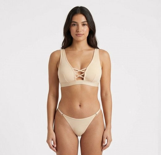 Women’s Criss-Cross Front Bralette Set – Stylish Wire-Free Lingerie (Multiple Colors)